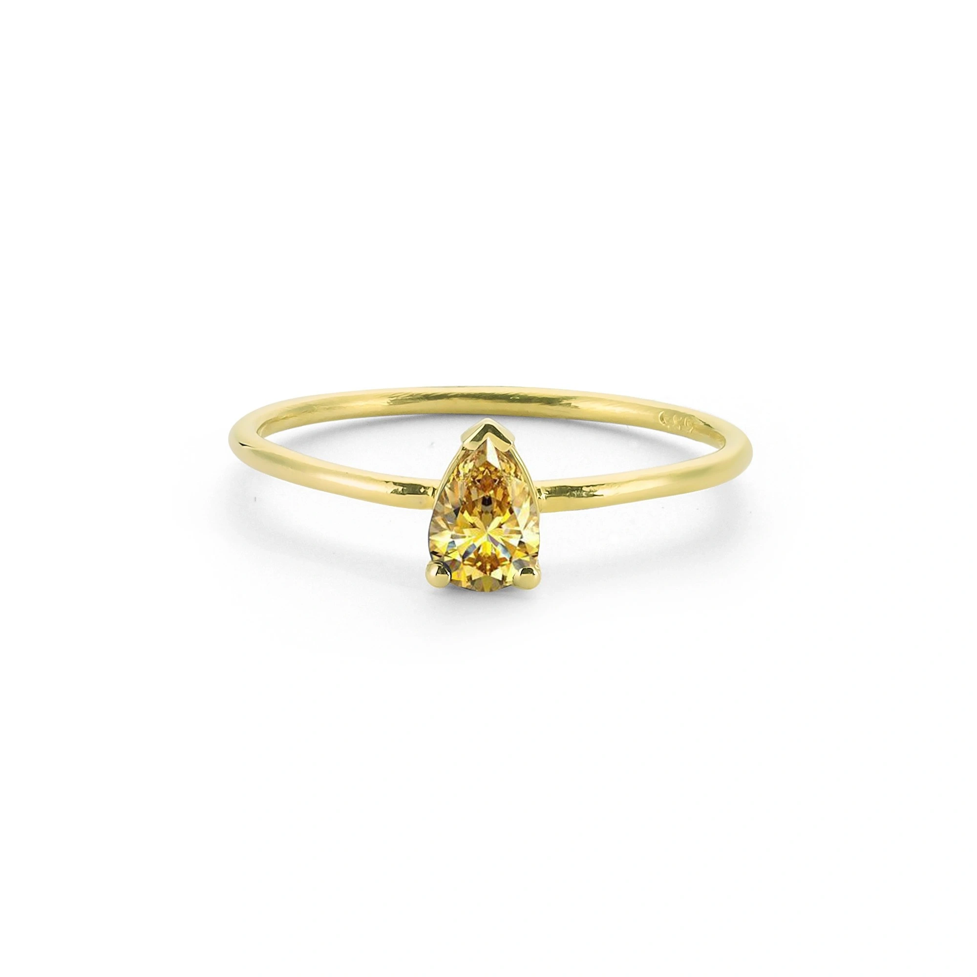 Renkli Sarı Damla Taşlı Altın Yüzük