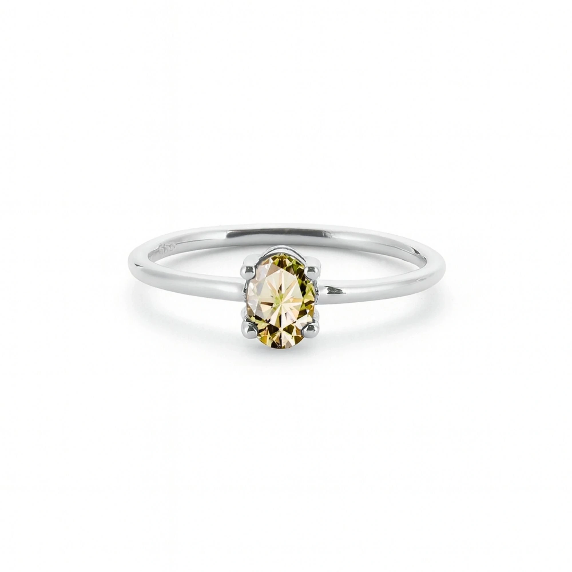 Renkli Sarı Oval Taşlı Altın Yüzük
