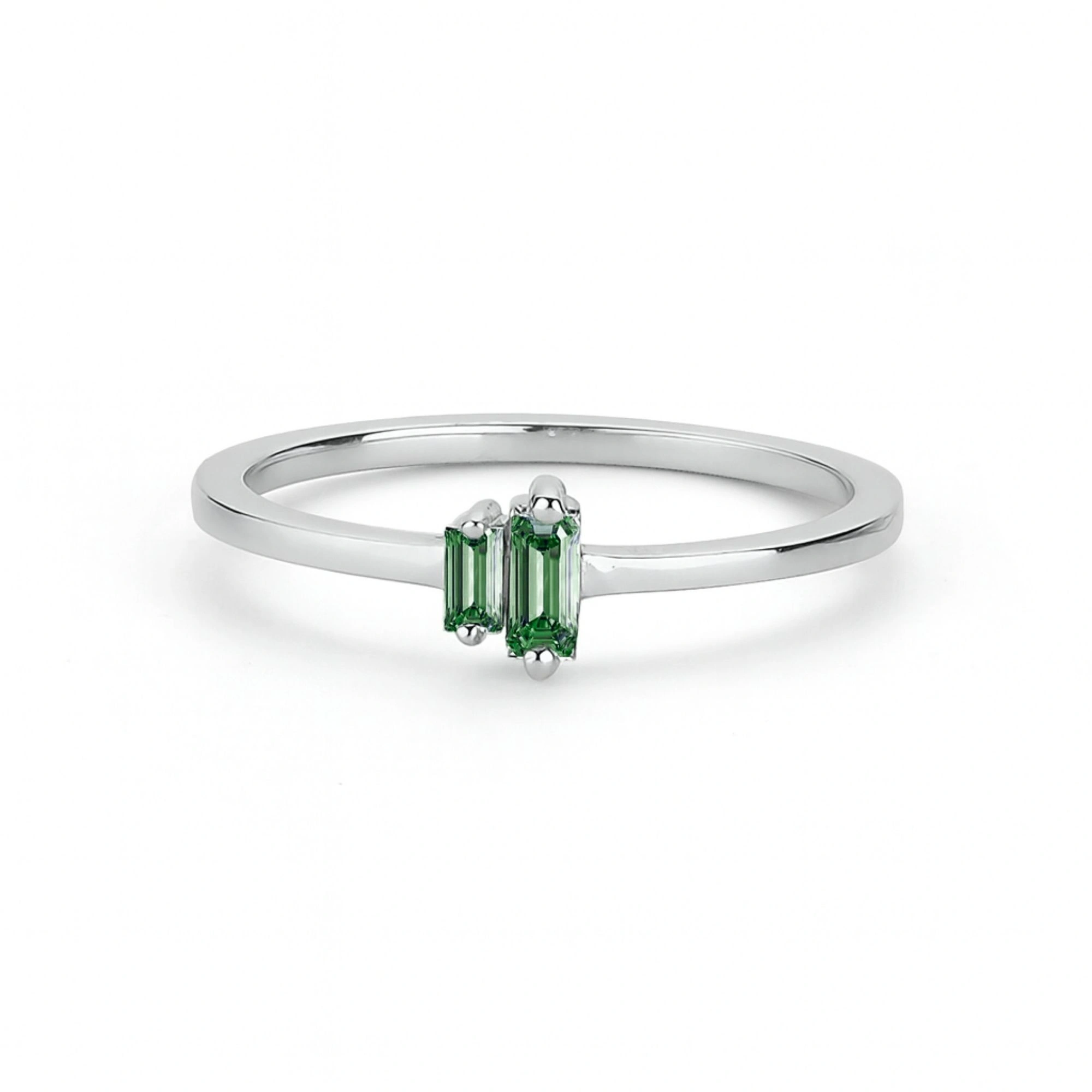 Renkli Yeşil Baget Taşlı Altın Yüzük