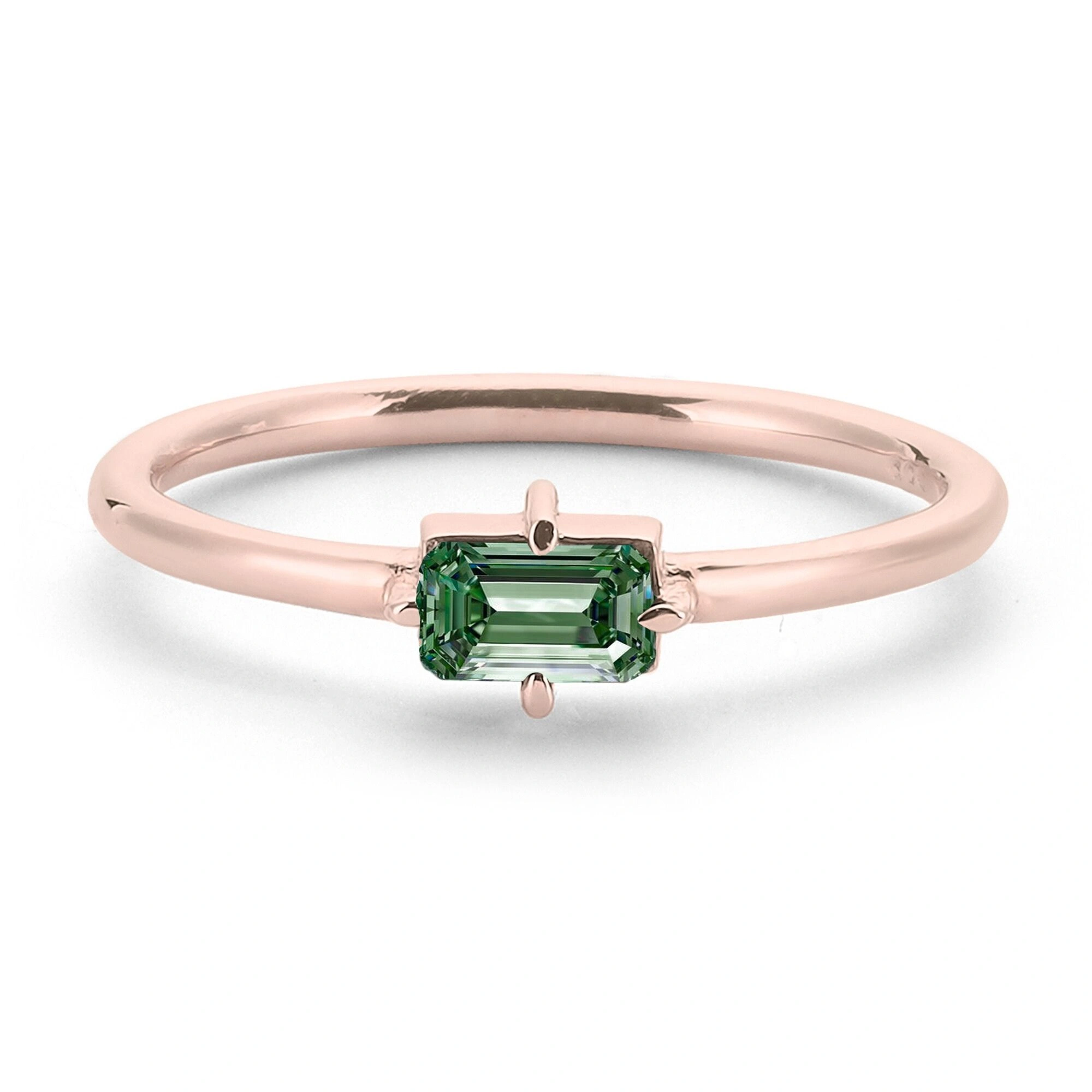 Renkli Yeşil Baget Taşlı Altın Yüzük