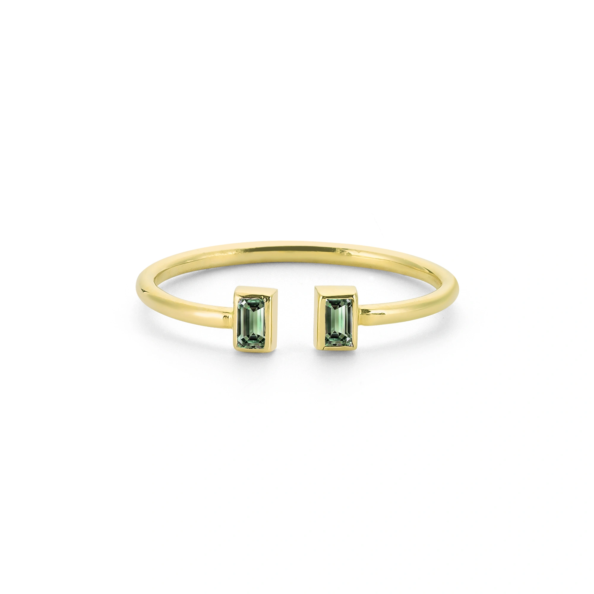Renkli Yeşil Baget Taşlı Altın Yüzük