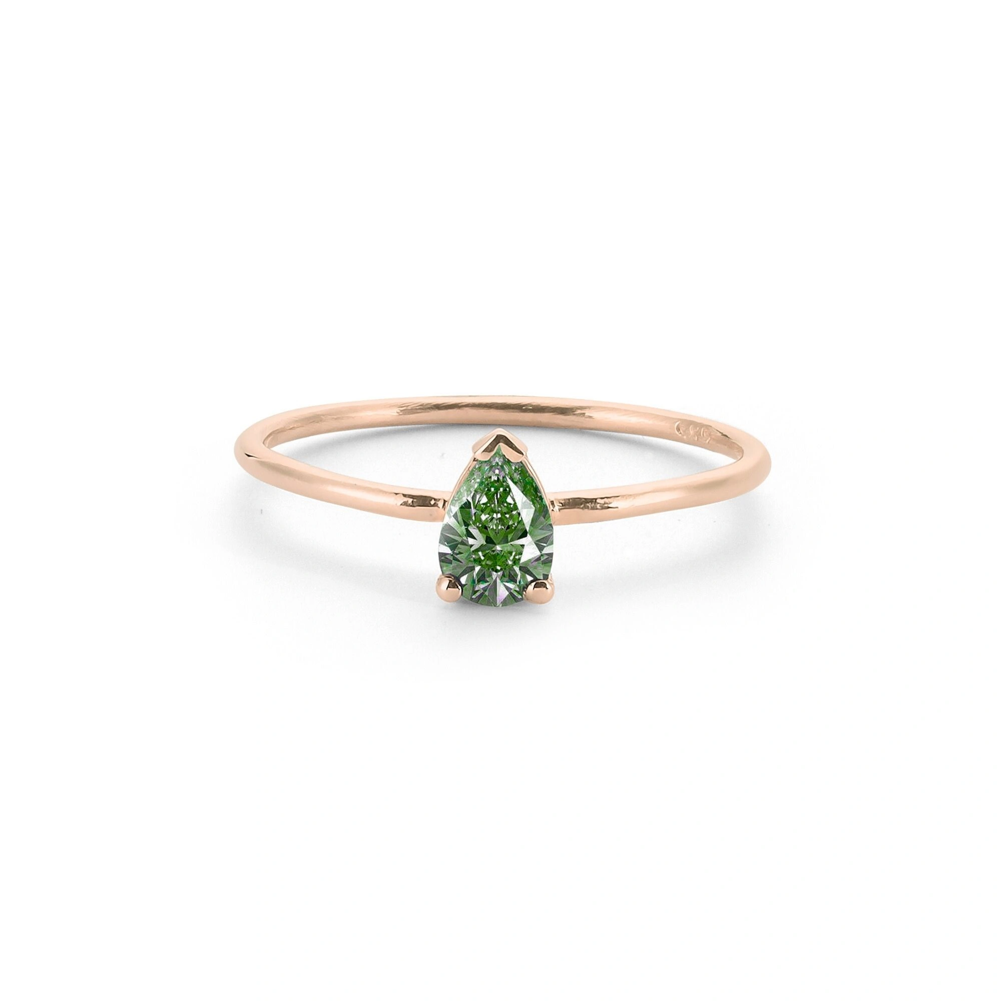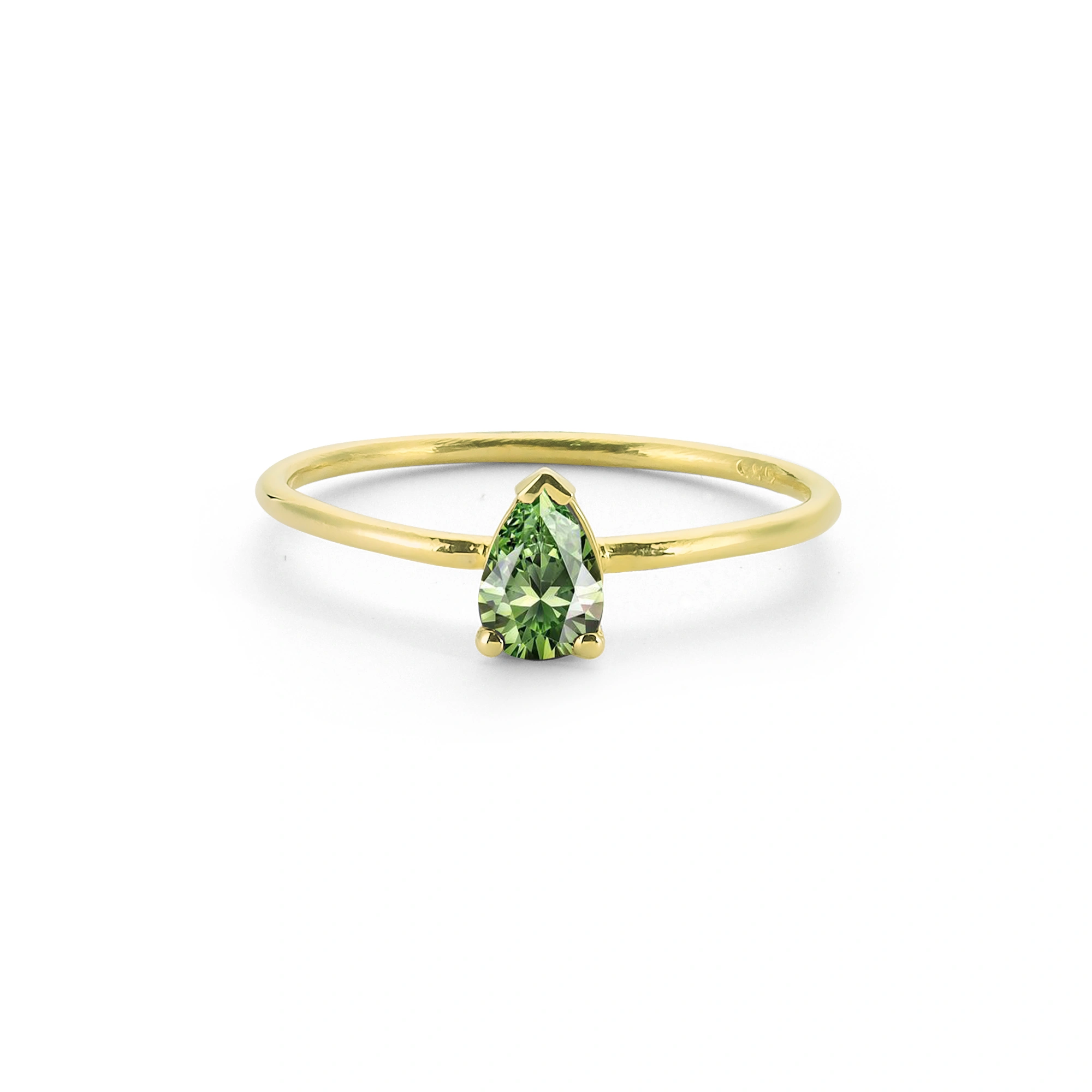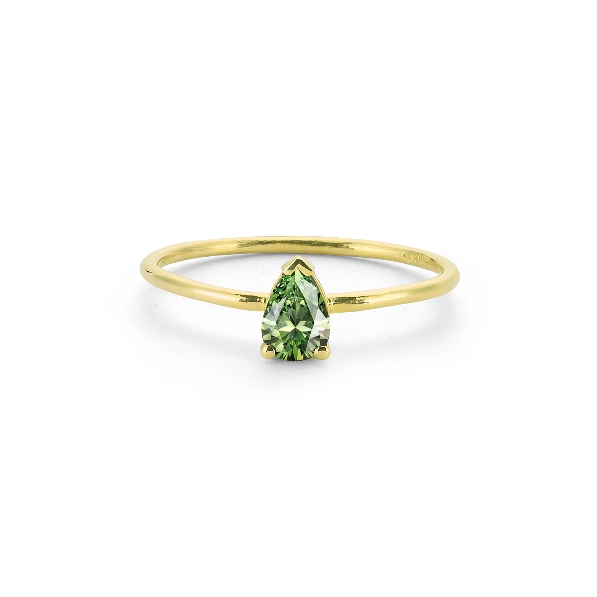 Renkli Yeşil Damla Taşlı Altın Yüzük