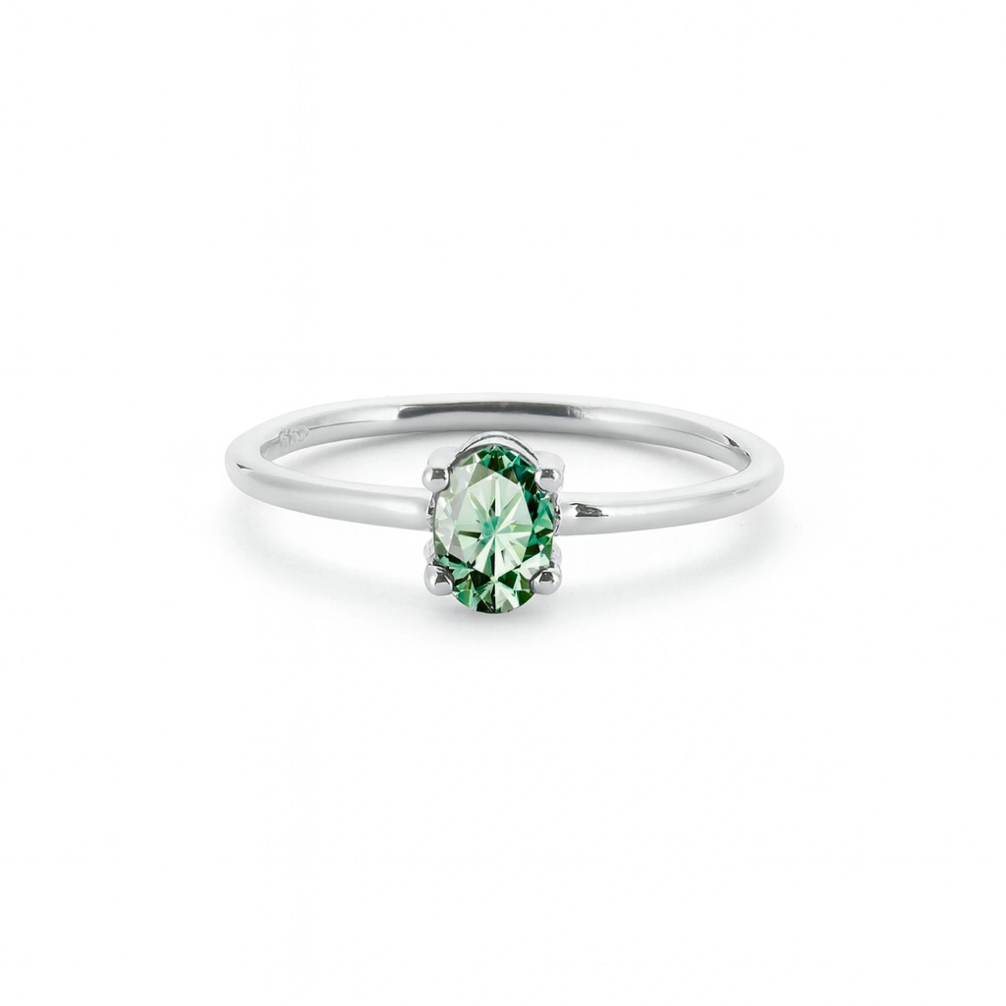 Renkli Yeşil Oval Taşlı Altın Yüzük