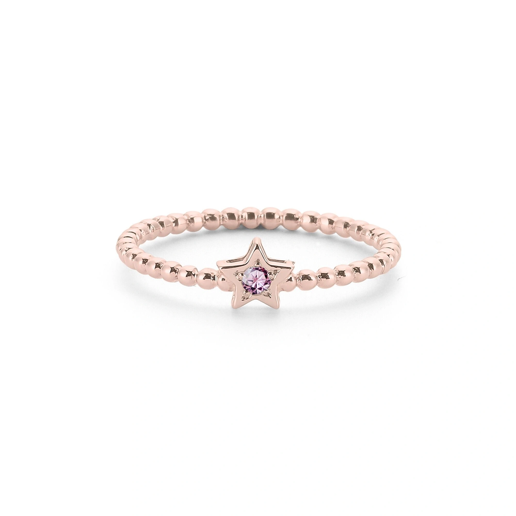 Renkli Yıldız Pembe Taşlı Altın Yüzük