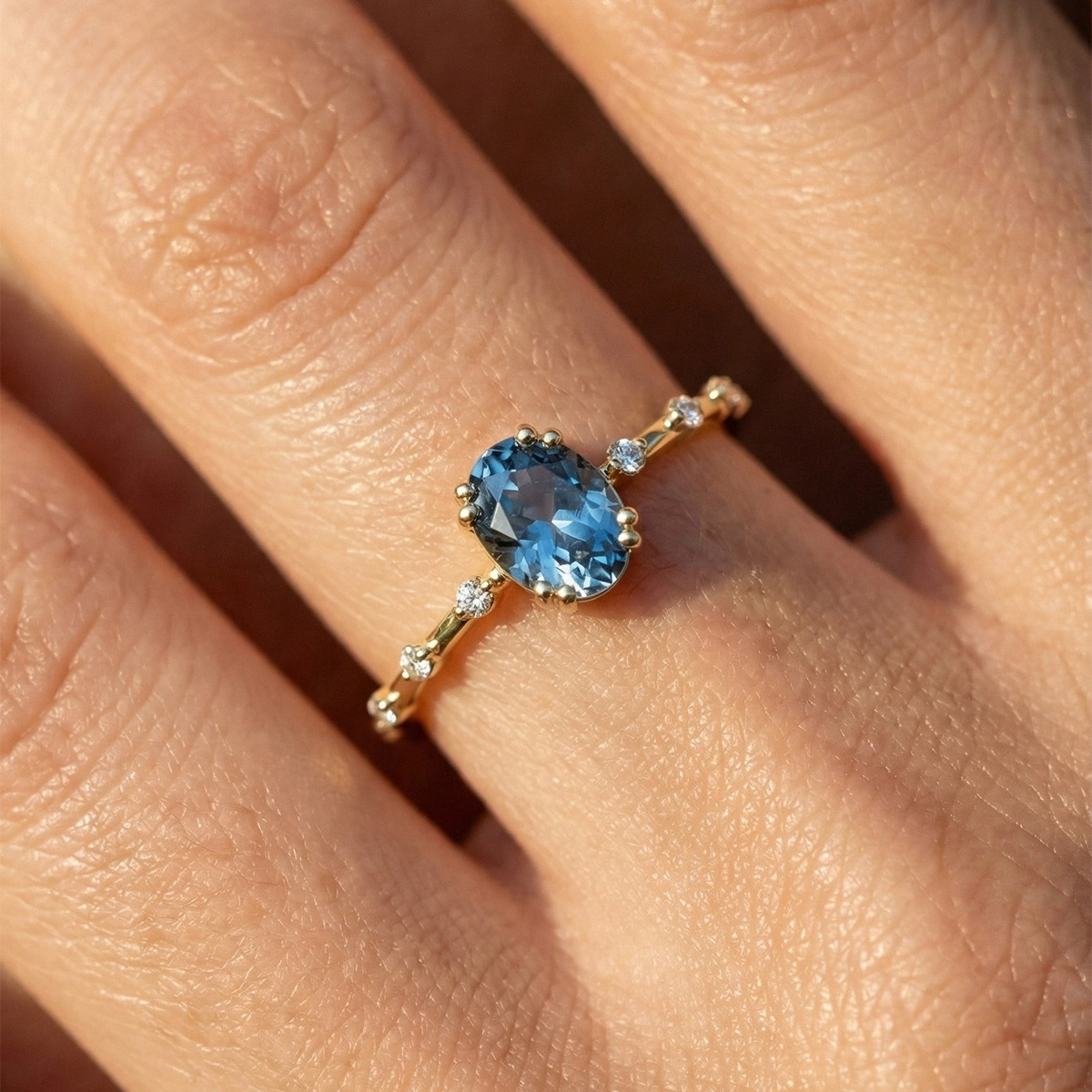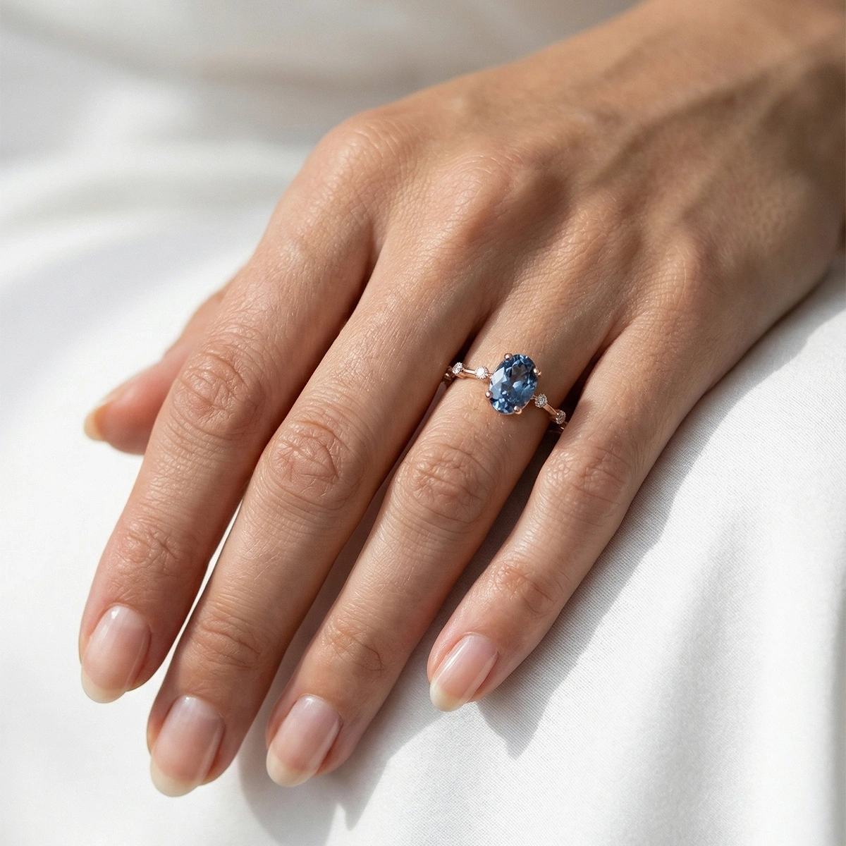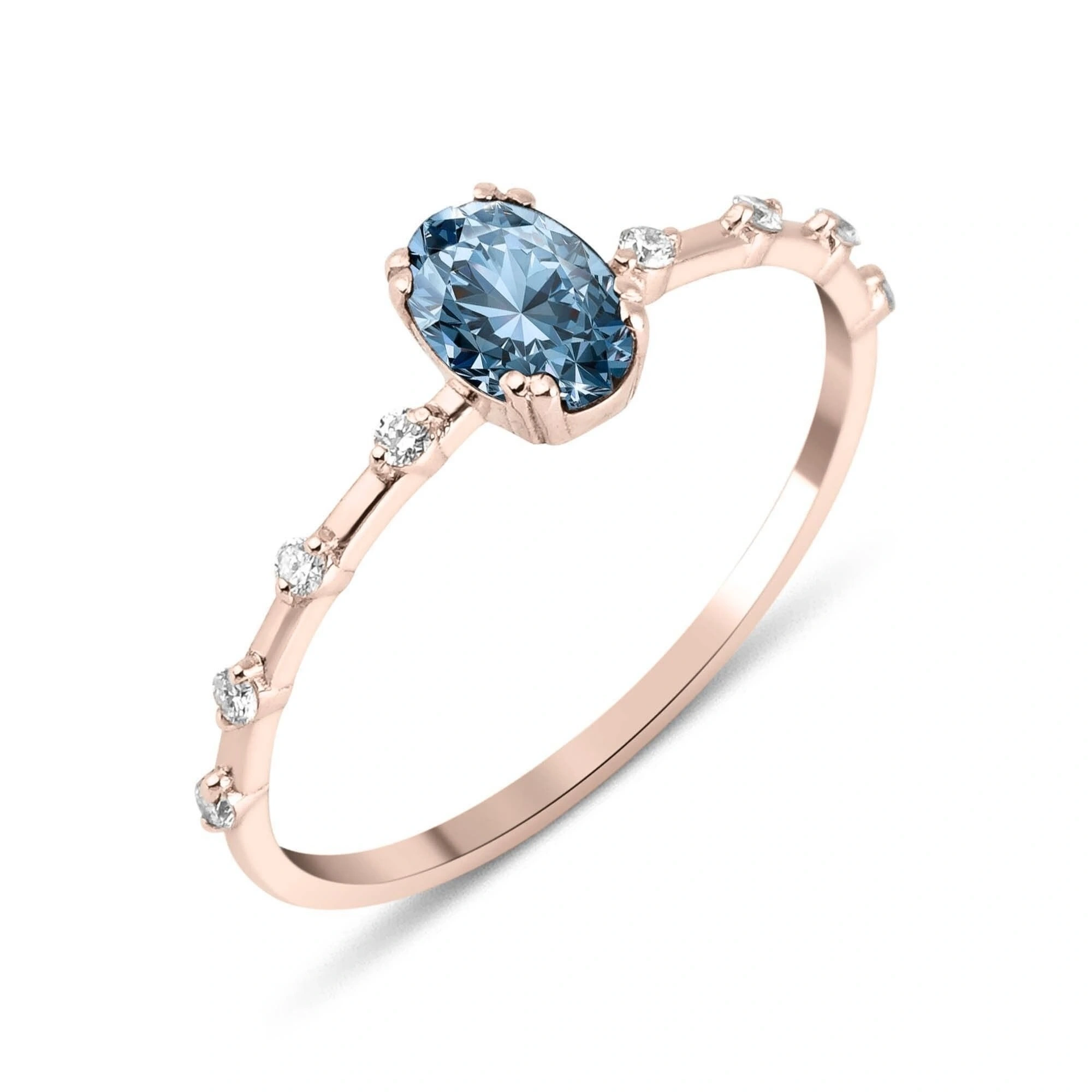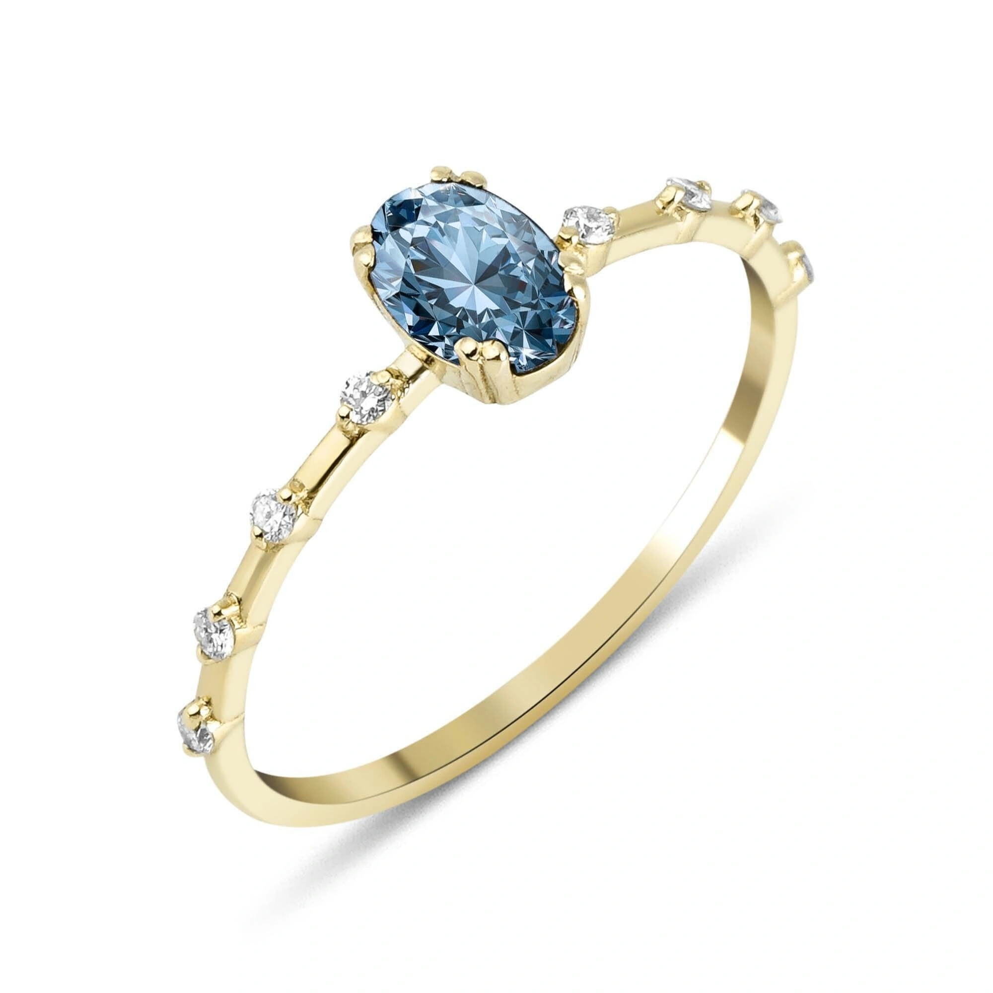 Su Mavisi Oval Taşlı Pırlanta Yüzük