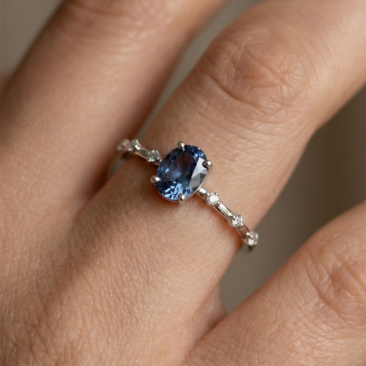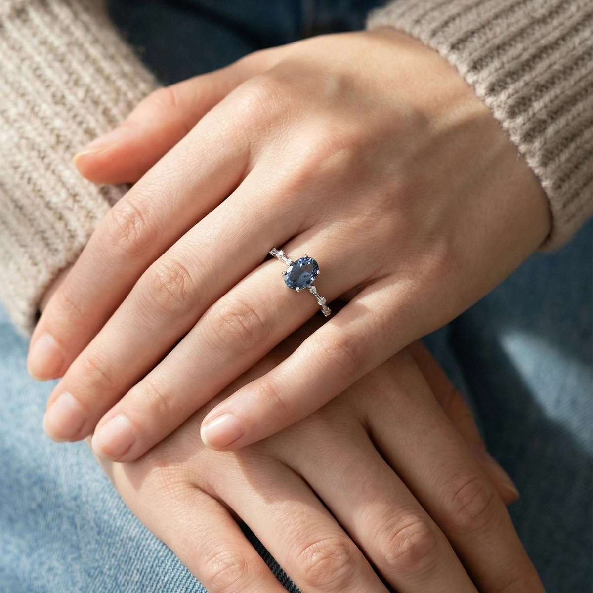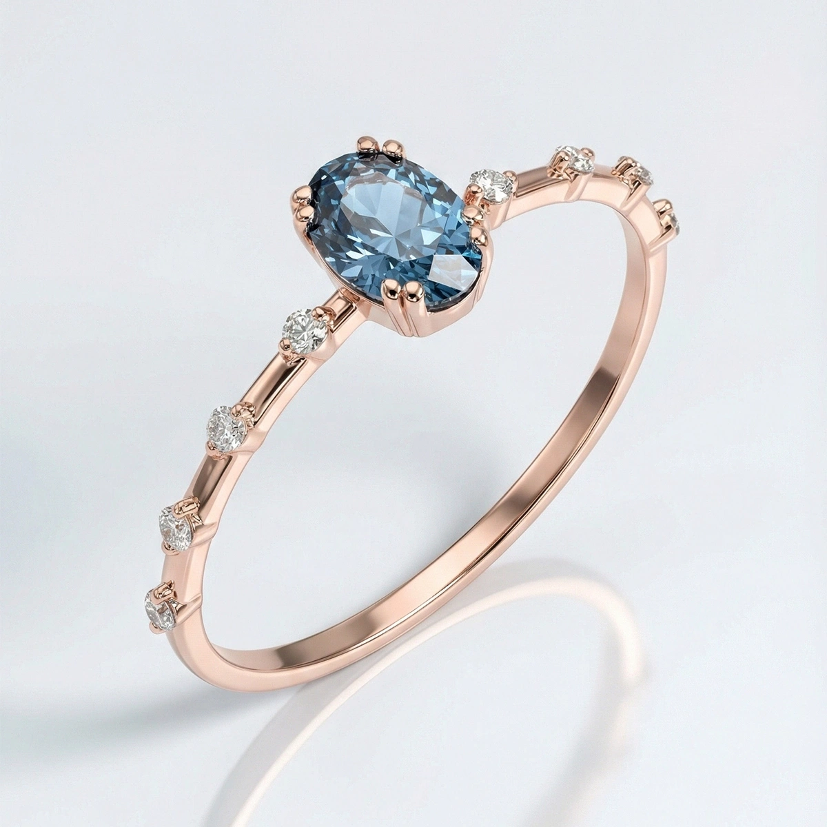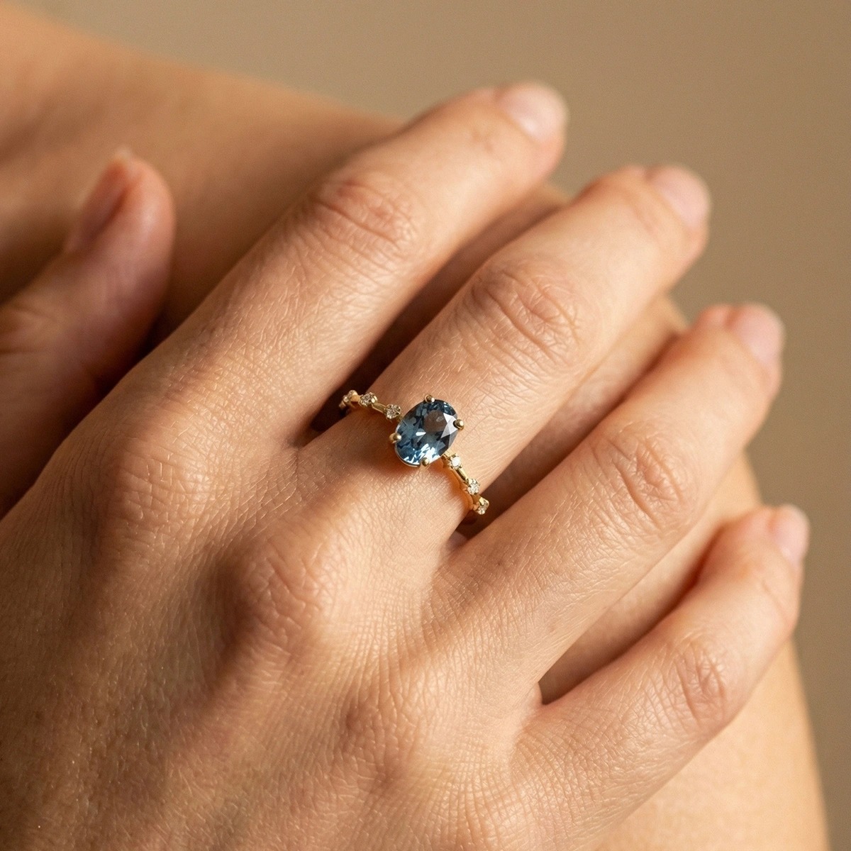 Su Mavisi Oval Taşlı Pırlanta Yüzük