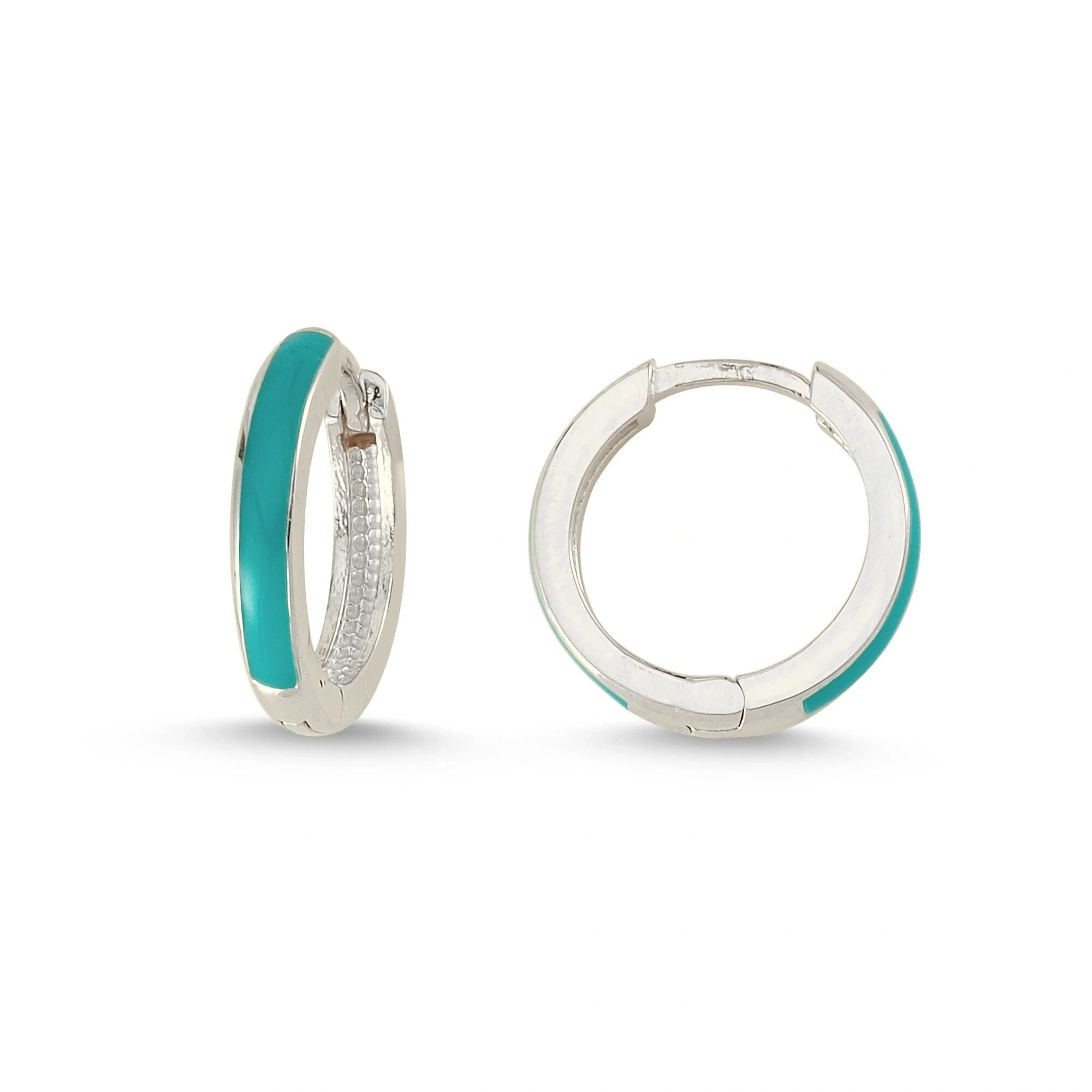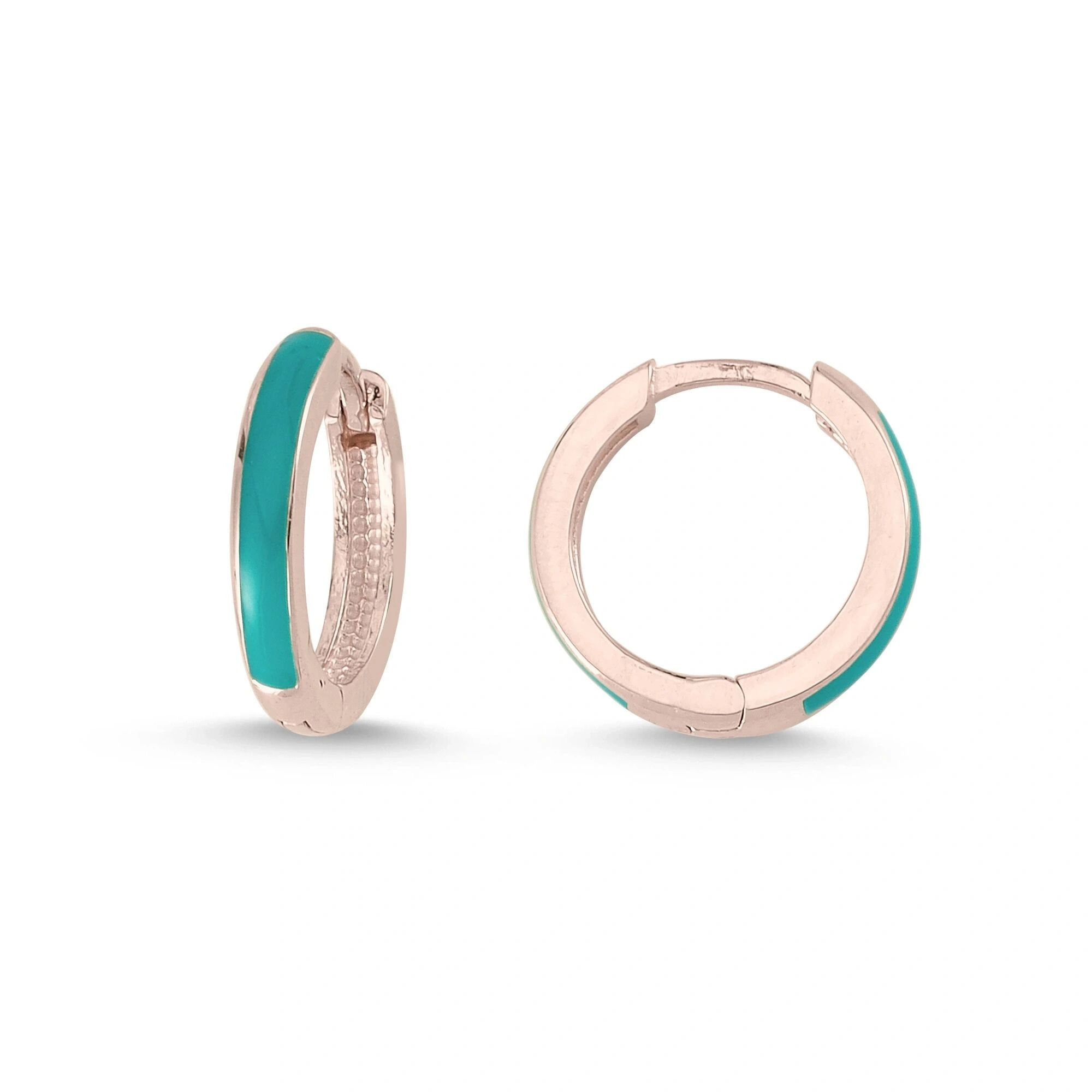 Turkuaz Mineli Halka Altın Küpe