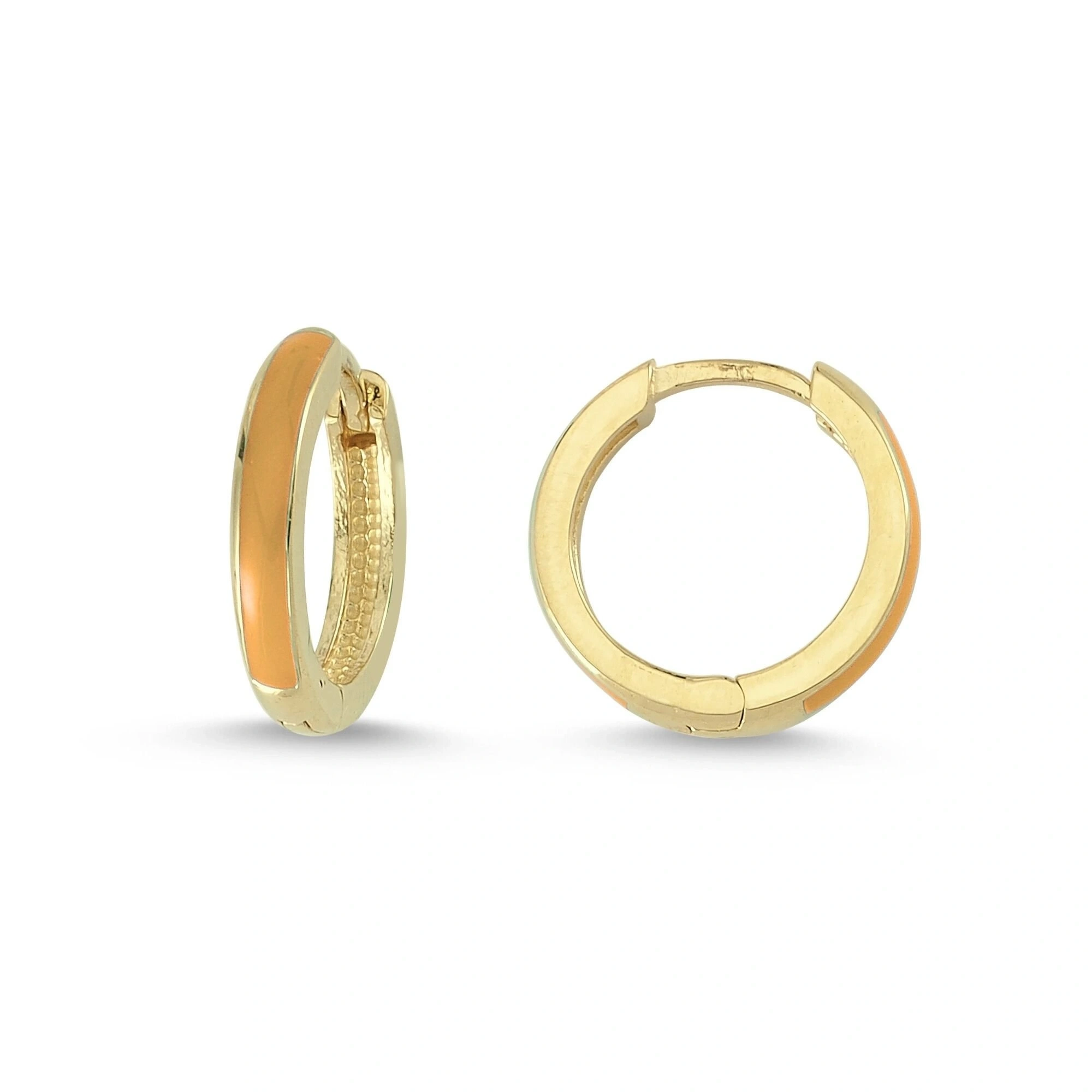Turuncu Mineli Halka Altın Küpe