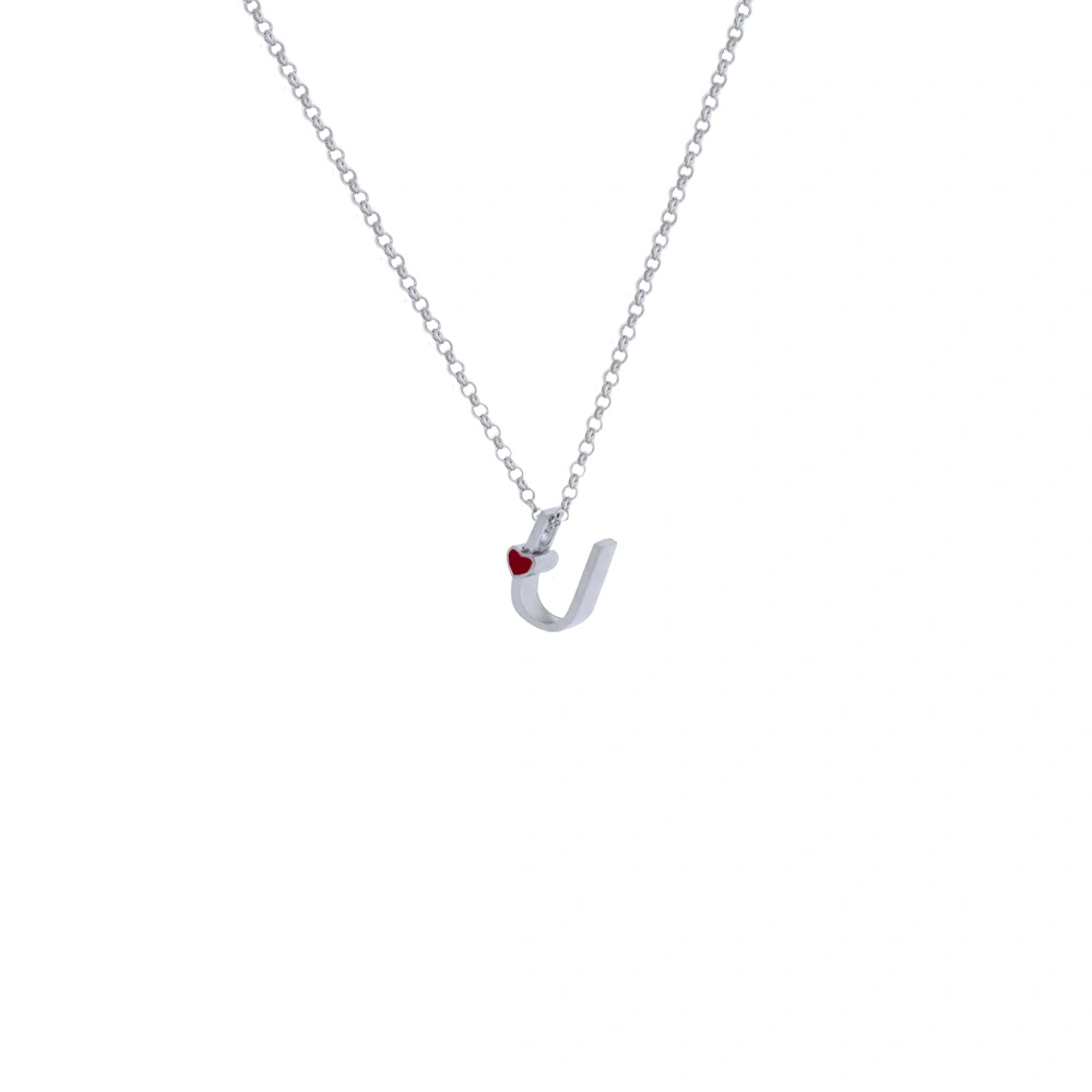 U Harfi Kalpli Gümüş Kolye