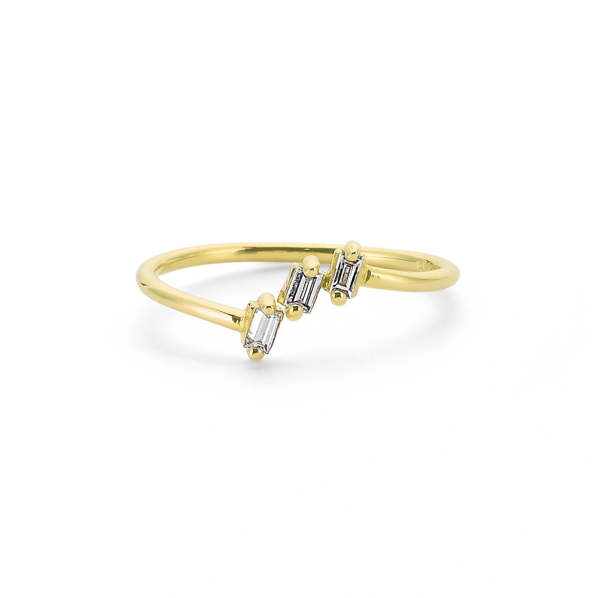 Üç Baget Taşlı Modern Altın Yüzük