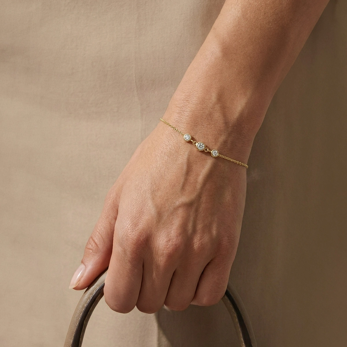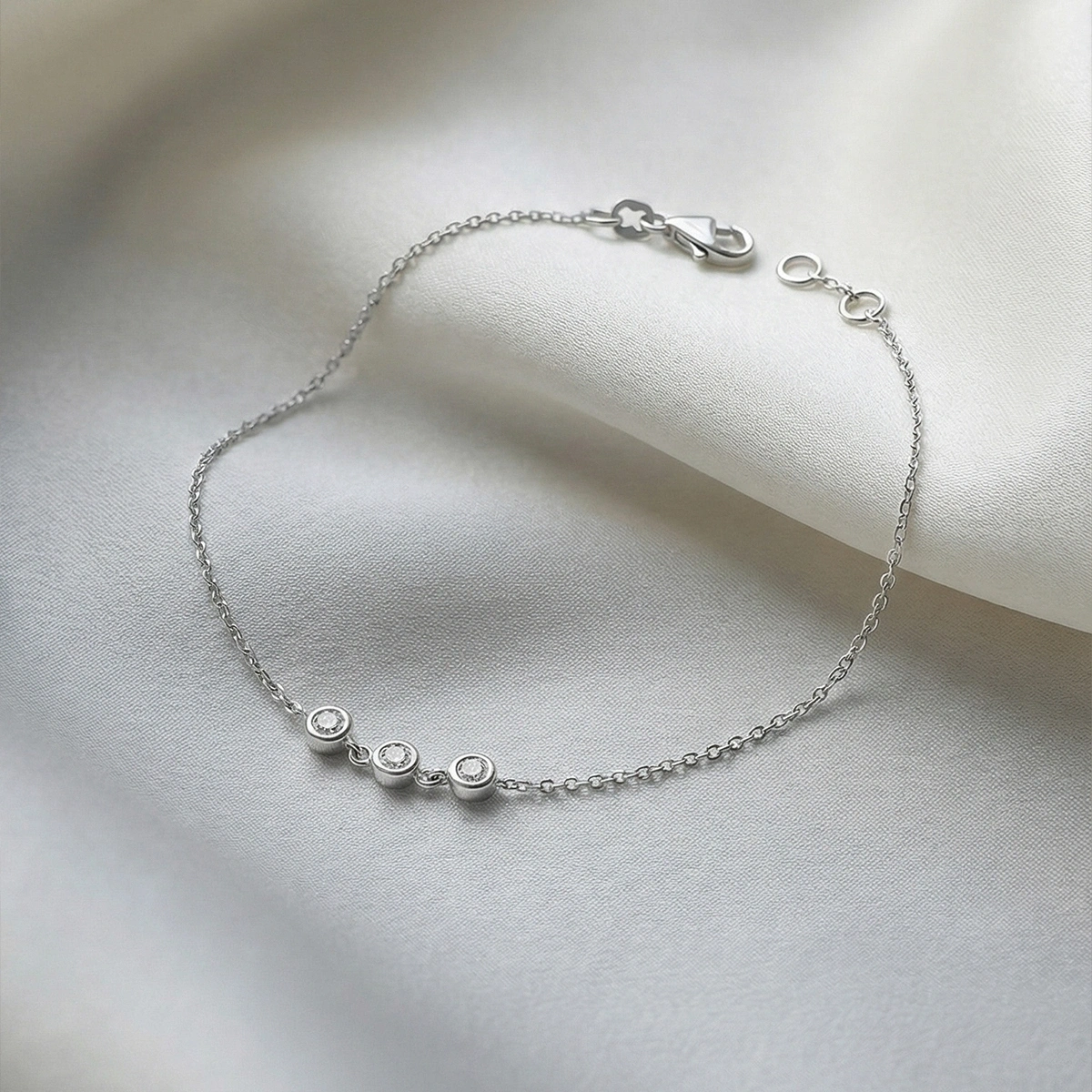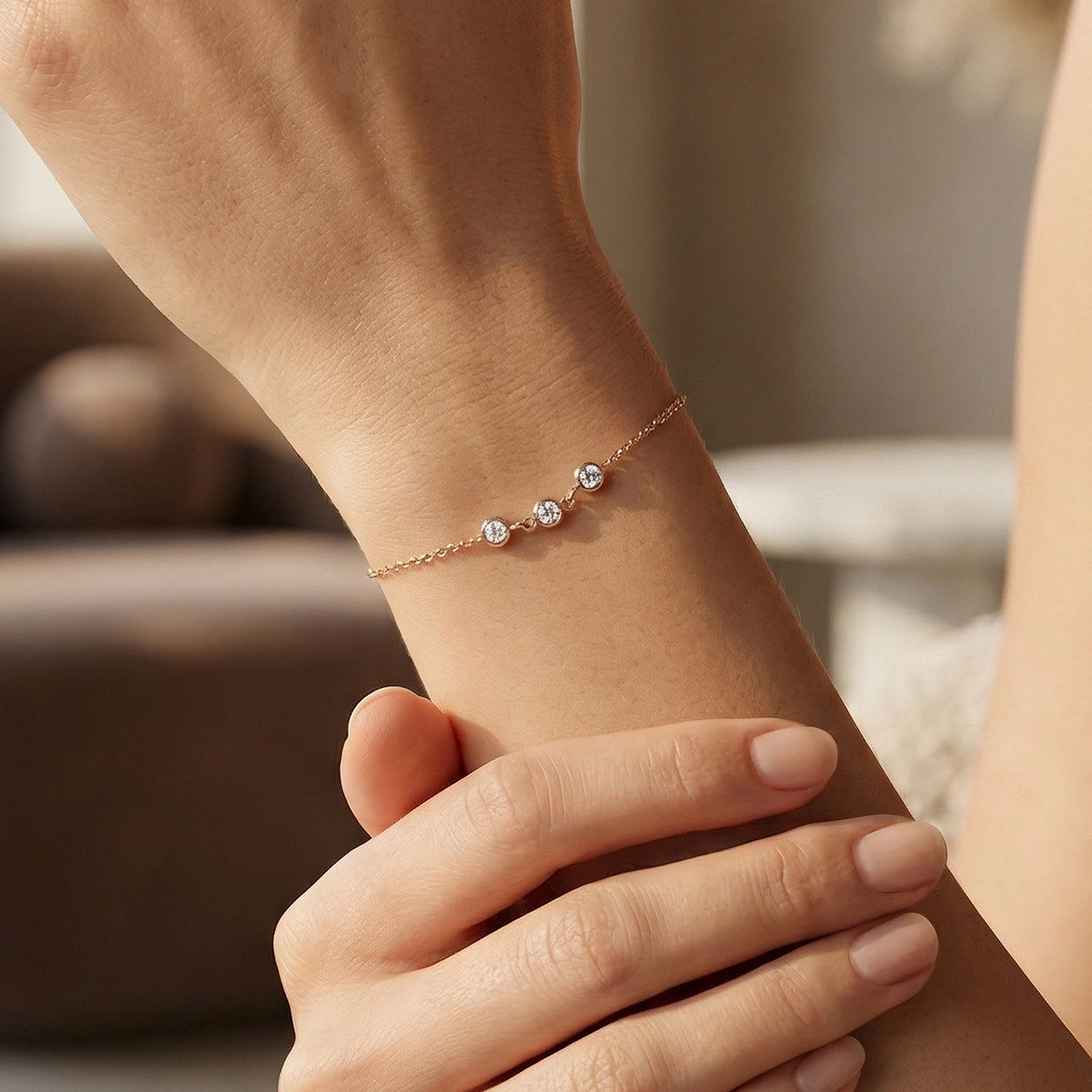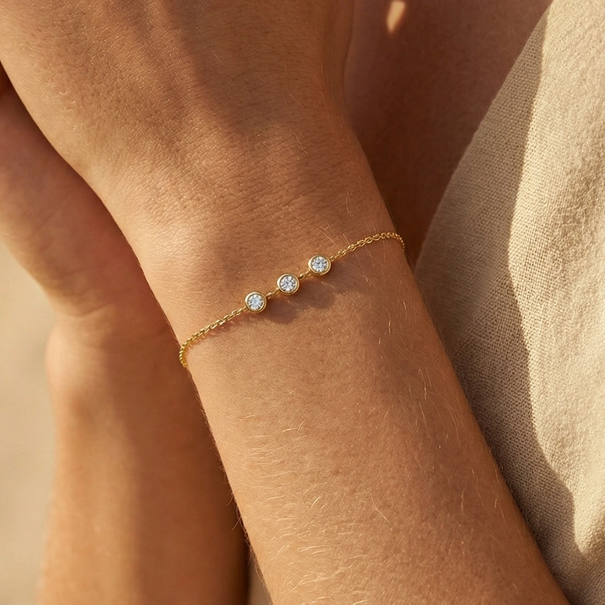 Parlak üç taş detayı, bileğinizde göz alıcı bir ışıltı yaratarak sade ama güçlü bir duruş sunar. Diğer takılarla kolayca kombinlenebilen yapısı sayesinde farklı tarz ve zevklere hitap eder. Kaliteli işçilikle üretilmiş bu bileklik, uzun süreli kullanıma uygundur ve her anınıza estetik bir dokunuş ekler.