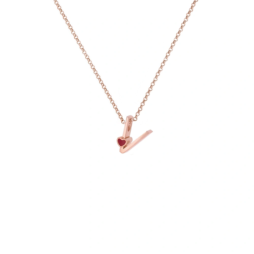V Harfi Kalpli Gümüş Kolye