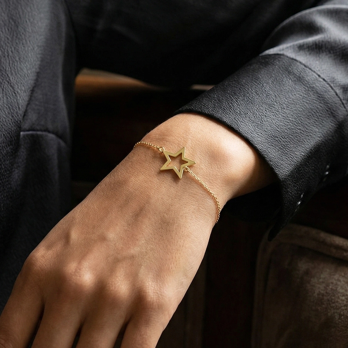 Gökyüzünün ışıltısını stilinize taşıyan Yıldız Plaka Altın Bileklik, modern tasarımı ve zarif yıldız figürüyle öne çıkan özel bir aksesuardır. Altın plaka üzerinde yer alan yıldız detayı, bileğinizde göz alıcı bir ışıltı oluşturur ve sade kombinlerinize estetik bir dokunuş ekler. Hem günlük kombinlerde hem de özel davetlerde şıklığınızı tamamlayan bir parça olarak tercih edilebilir.