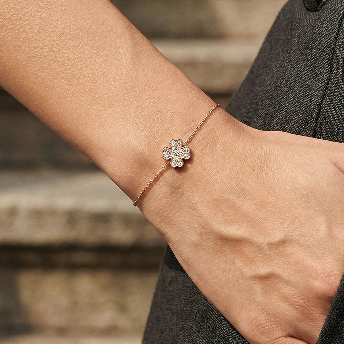 Şans ve zarafeti bileğinizde buluşturan Yonca Şans Altın Bileklik, zarif tasarımıyla öne çıkan özel bir aksesuardır. Yonca figürünün taşıdığı pozitif anlamı modern altın tasarım ile birleştiren bu bileklik, her bakışta dikkat çeker. Günlük kombinlerde sade bir şıklık sunarken, özel davetlerde de sofistike bir dokunuş ekler.