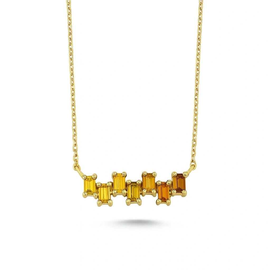 Zikzak Sarı Baget Taşlı Altın Kolye