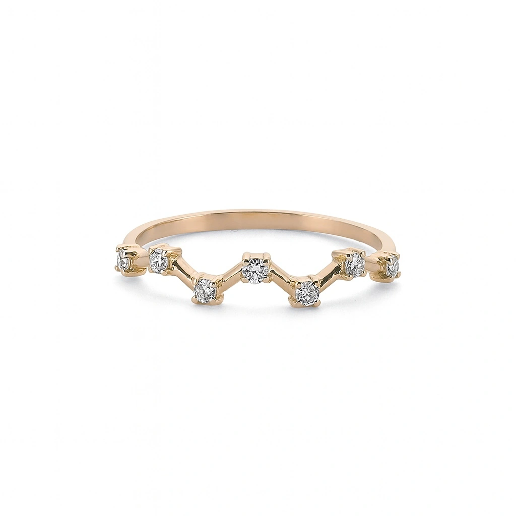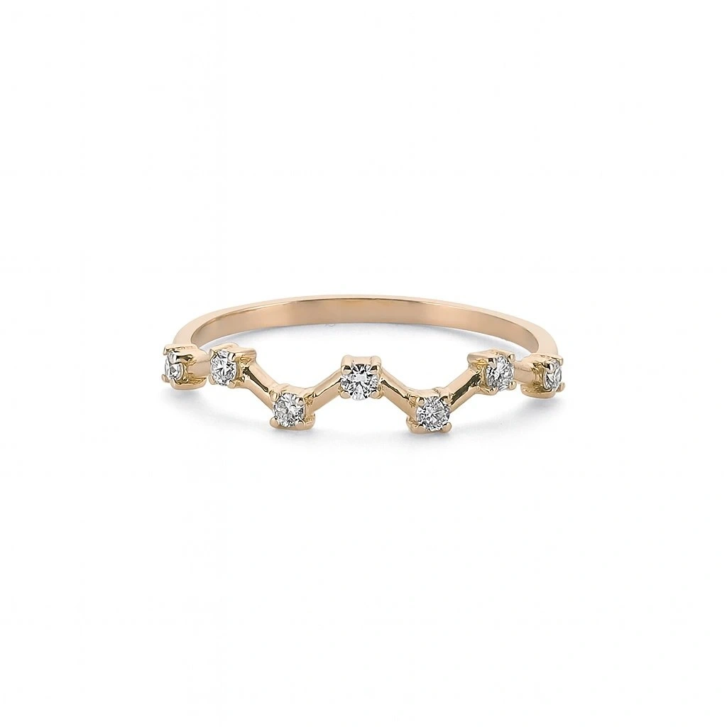 Zikzak Taşlı Altın Yüzük