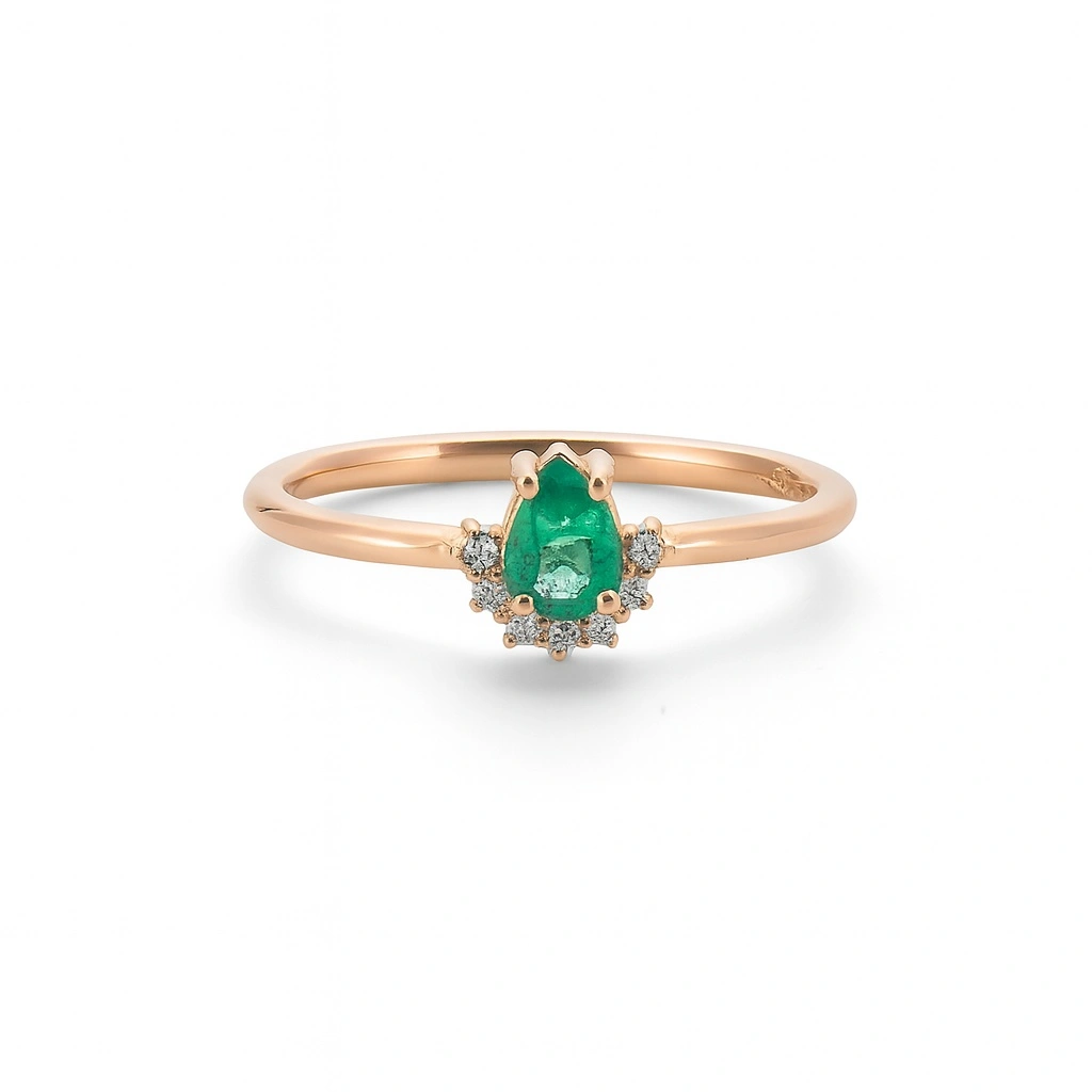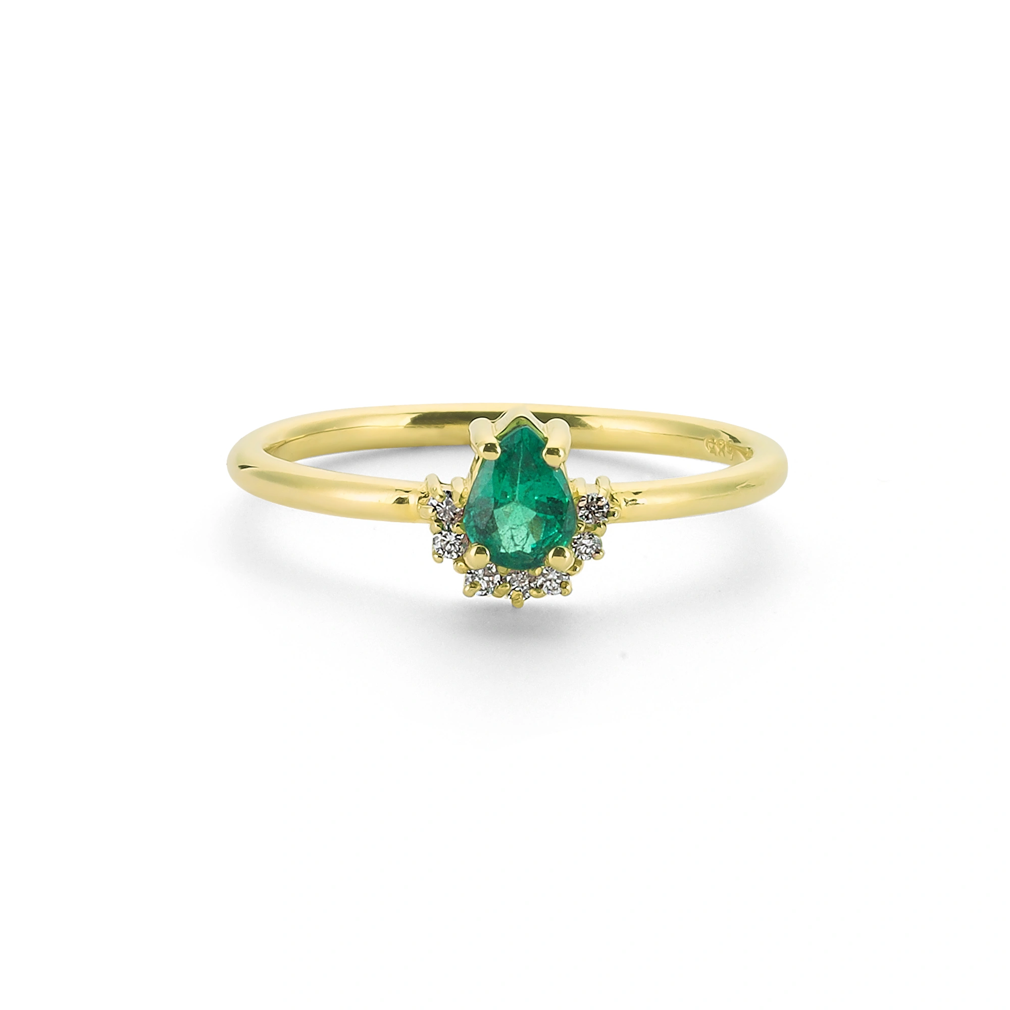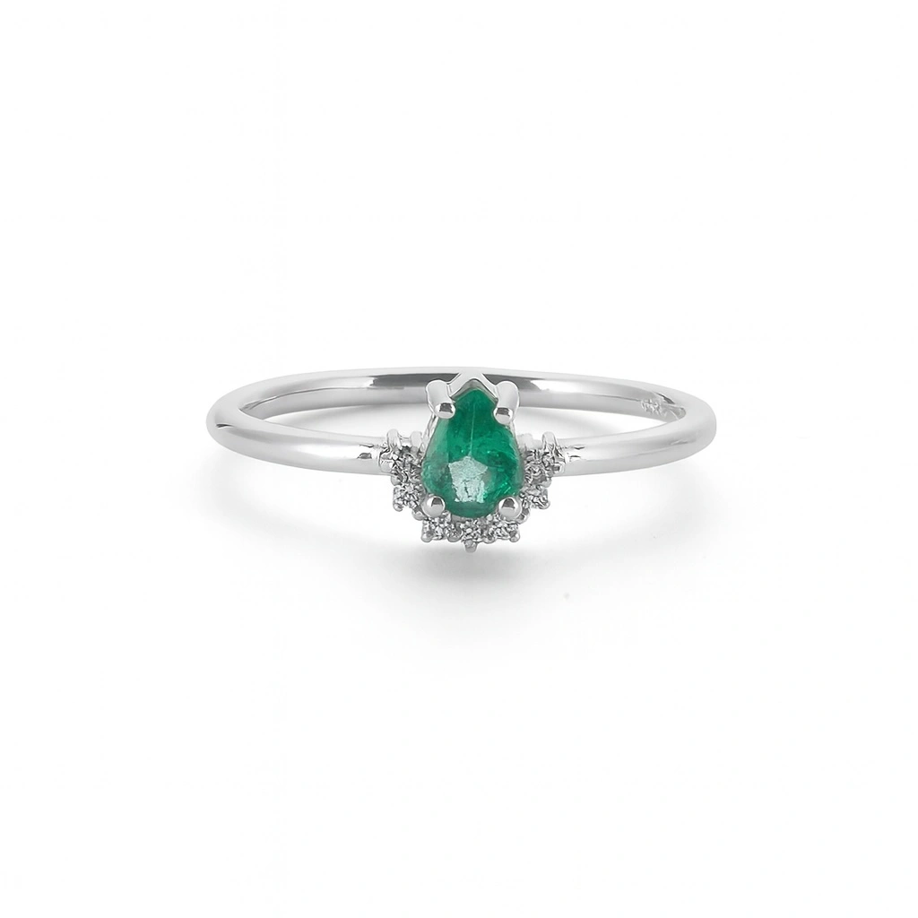 Zümrüt Yeşili Damla Taşlı Pırlanta Yüzük